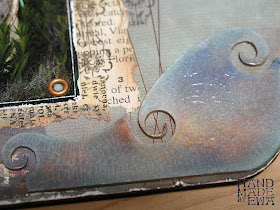 Mixmediowo wyszło - użyłam gazety, białej akrylówki, fragmentów serwetki, metalowych elementów biżuteryjnych, maszyny do pisania i 4 szt. różowych mikrokulek (tak, tak, nawet je trochę widać w oczku kwiatka). Tudzież znanego cytatu Gertrudy Stein. ;-)